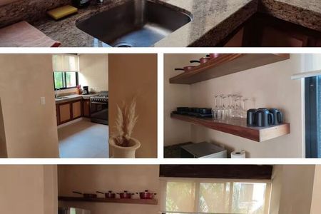 Subiendo a la planta alta encontramos una de las recámaras secundarias con una gran terraza que da vista hacia el jardín, la recámara cuenta con su vestidor y baño. Caminando por el hall hay un espacio para acondicionar un área de trabajo, clóset de blanos y la segunda recámara con vestidor y baño también. Continuamos y tenemos una sala de TV con un balcón y el distribuidor de las recámaras cuenta con iluminación natural para acceder a la recámara principal la cual también tiene acceso al balcón de la sala de TV. La recámara principal tiene espacio para una cama king size, los dos burós y para una sala de estar o un espacio adicional multifuncional. Cuenta con walk-in clóset, doble lavabo y el espacio de regadera y WC separados. Las recámaras cuentan con black out y persianas las cuales, se quedan en la casa al igual que los ventiladores, lámparas y refrigerador. Estacionamiento descubierto para 4 autos.